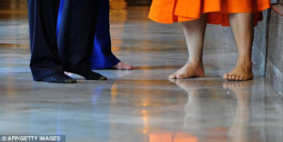 : , . skip to main skip to sidebar Search This Blog Loading . Buddhism in the News Loading . Monday , November 19, 2012 President Obama Visits Wat Pho Monastery in Bangkok , . Thailand The above image is one of my favorite pictures of late . U.S . nbsp President Barack Obama and U.S . Secretary of State Clinton recently visited Wat Pho monastery and head-monk , Chaokun Suthee Thammanuwat in Thailand , Bangkok link The American leaders both observed the Buddhist tradition of removing shoes before ending a temple . nbsp In the blue trousers is U.S . Secretary of State Hillary Clinton . The one wearing socks and dark blue slacks is President Obama . The head-monk is the one wearing . orange I find this image so striking and full of lessons . The photo is poignant reminder that regardless of
