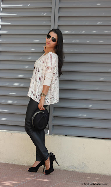: Home About Contact Awards My Lookbook Shop My Closet Twitter Facebook Lookbook.nu Thursday , September 27, 2012 Fall Trend Hollow Jumpers Leather pants Hi , Everyone Knitted Jumper with Crochet Lace Chicnova.com Leather Pants Chicnova.com Neckpiece Veromoda As you can very well judge from the pictures , I am strutting confidently in style with my latest found love in hollow jumpers I loved them from the very moment I saw them in latest collection of Chicnova.com and even before they would have sold out , I wanted to make this wonderful hollow jumper my own . Its batwing sleeves and crochet lace details were enough to make my heart drool . Its so soft and cosy that you can pair it up for a day wear or a bit chilly evening too Nothing could have highlighted the jumper better than HOT