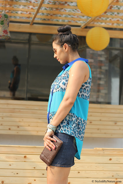 : Home About Contact Awards My Lookbook Shop My Closet Twitter Facebook Lookbook.nu Monday , October 29, 2012 Fall Trend Animal Prints Bold Blue Hi , Everyone Animal Print high low Blouse BaBassu Ray Ban Avaitors Pretavoir Vintage Rose Ring OASAP.com While deciding for a lovely afternoon outfit with my girls , nothing could beat this super chic blouse which is a mix of color block and leopard print trend . The blouse is a hit on fashion charts and gave an instant boost to the simple denim skirt . Its high low hem again made is an attention seeker and girls couldn't resist asking the details for the same . My day was made To balance this wonderful piece I kept the accessories to neutral and added a golden belt to quirk up the look a bit . Not to forget my dear new pair of Ray Ban Click the