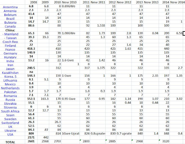 World Nuclear Power for 2009 and 2010 and up to 2014
