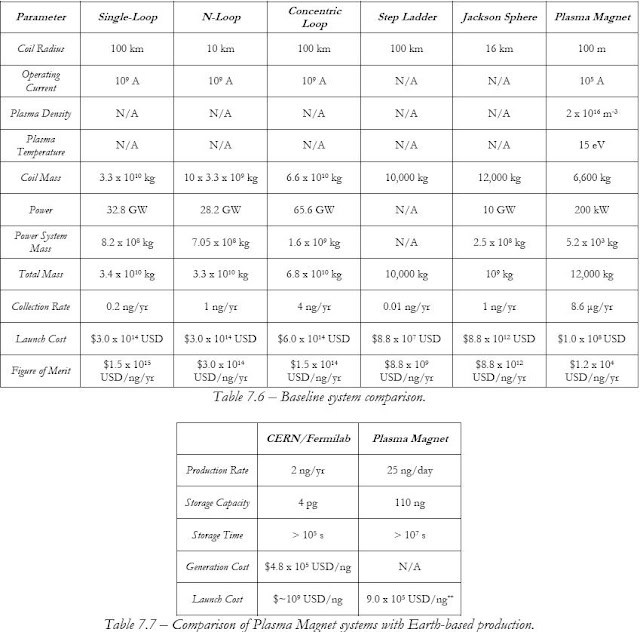 , skip to main skip to sidebar Next Big Future Tracking high impact progress to the technology future , future technology and especially advanced nanotechnology , nuclear and energy technology , quantum computers , life extension , space technology and AI . Proposing and tracking the best societal , business and technical choices to the next big things that will shape our future . Official Lifeboat Foundation news . source March 19, 2010 Superconductor and Antimatter Bootstrap Space Launch , Propulsion and Weapons Ads Nano Technology Netbook Technology News Computer Software Extraction of Antiparticles Concentrated in Planetary Magnetic Fields by James Bickford describes an orbital plasma magnet system for concentrating and trapping . antiprotons The baseline concept calls for using conventional high temperature superconductors to form two pairs of RF coils that have a radius of 100 m and weigh just 7000 kg combined . A 5000 kg nuclear or solar power system provides the 200 kW required to operate systems and compensate for dissipative losses in the plasma . The magnetic field induced by plasma motion driven by the RF coils is used to first concentrate the incoming antiprotons and