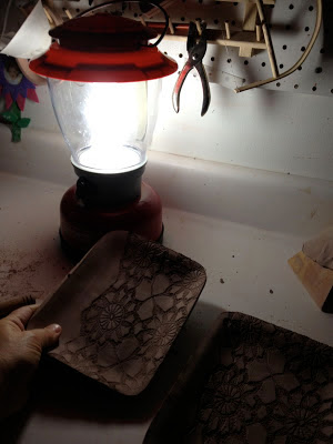 : Wednesday , November 7, 2012 STILL in the dark Day 10. . I am certainly more fortunate than people who have lost their homes and are displaced . Still no power and now it's . cold Have done a little hand building just to pass the time between cleaning some kids rooms and hanging out at the laundromat . nbsp At this stage I have to change the date of my Annual Holiday Event I will be moving it out into December . I have emailed customers who are waiting on orders , but if I missed you , please be . patient Bridges Pottery Working by lantern Bridges Pottery small work Posted by P.Bridges at 4:15 PM No : comments Post a Comment Older Post Home Subscribe to : Post Comments Atom BRIDGES POTTERY Port Washington Farmer's Market Saturday October 13th from 8:00 to 12:00. Get your veggies and then