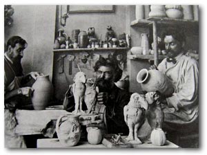 Antique Marks Antique Ceramics Antique Glass Antiques Shop Antique Terms Latest Updates Martin Brothers Your Guide to Antique Pottery and Porcelain . Marks The Martin Brothers and their Grotesque Gothic Revival art pottery The Martin Brothers pottery was founded by the eldest of the group , Robert Wallace Martin 1843 to 1923 Robert Martin trained in sculpture at Lambeth School of Art and later at the Royal Academy of Art . He set up the first Martin Brothers pottery in the 1860s , where he made terracotta sculpture . In 1873, he set up a new pottery with his brothers , Charles , Walter and Edwin Martin in Fulham , London . In 1877 they moved to Southall , where they made salt-glazed stoneware with Gothic Revival influences , now known as Martinware . The Gothic Revival was an 18th century