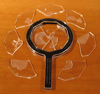 : skip to main skip to sidebar Brian's Damn Puzzle Blog A chronicle of my descent into the realm of the . puzzle-obsessed April 21, 2011 Get a Clue Get a Clue is an interesting puzzle by Pavel Curtis that I picked up at IPP30 in Osaka . It was Pavel's exchange puzzle it Osaka , and when I heard his description of it , it sounded like a fun little puzzle that I should check out . He didn't have many left over after the exchange , but I managed to pick one . up I forget the whole schpiel , but the premise is that there has been an attempted murder , and your goal is to figure out what happened by reassembling the broken magnifying glass in two different ways . The instructions say that the goal is to find the clues to a famous fictional attempted . murder The interesting thing about this