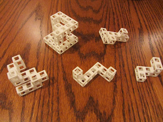 : skip to main skip to sidebar Brian's Damn Puzzle Blog A chronicle of my descent into the realm of the . puzzle-obsessed February 7, 2012 Reilly's Cube Reilly's Cube is a puzzle designed by Mike Reilly and manufactured by Creative Crafthouse The folks at Creative Crafthouse were kind enough to send me a copy to review . Thanks Photo by Mike Reilly The puzzle consists of eight blocks , each with three faces with a peg and a hole . The peg and hole can be in one of four different configurations . The goal is to assemble the cube such that all the pegs and holes fit together . Simple enough , right I thought so , and quickly dissembled the puzzle and expected to be able to put it back together without too much trouble . About 15-20 minutes later I hadn't made much progress : I kept getting