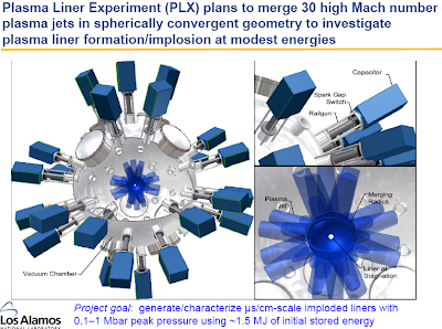 skip to main skip to sidebar Pages Home Timeslide View Flipcard January 30, 2012 Minirailguns for commerical nuclear fusion update HyperV Technologies is trying to develop minirailguns for the world’s first commercially viable fusion reactor . technology Their research could result in the development of a controlled hot fusion reactor that is scalable to provide between 100 MW and 2,000 MW of clean base load electric power . There was a 20 page presentation from June of 2011. Imploding Plasma Liners as a Standoff Driver for Magneto-Inertial Fusion They are firing milligrams of plasma at 140 times the speed of sound . The commercial energy generating version will fire the plasmas at 285 times the speed of sound . The breakeven nuclear fusion facilities will cost less than 100 . million