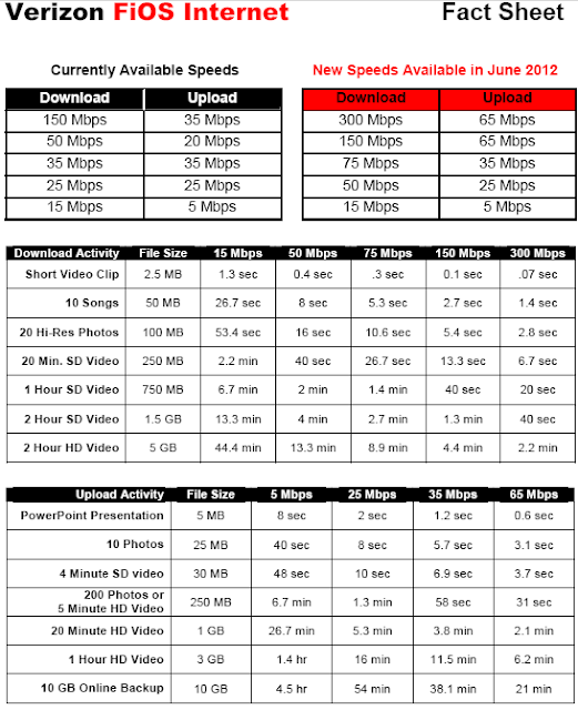 skip to main skip to sidebar Pages Home May 30, 2012 Verizon Raising Fiber Speed and Prices Email This BlogThis Share to Twitter Share to Facebook Tweet Verizon has announced that they will raise the prices for their Fiber internet . service Verizon is also increasing the speed of the fiber services that they . offer Through the end of 2010, Verizon spent 23 billion on building out its FiOS . network The fastest Verizon FiOS service now is 150Mbps downstream and 35Mbps upstream , with TV and voice , for 199.99 per month When it comes to national-scale broadband services , the 300Mbps service won't have any competition on the speed front . The large U.S . cable operators don't offer any services faster than about 100Mbps , and rival carrier AT which doesn't build fiber all the way to homes