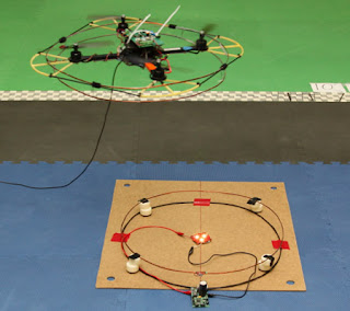 skip to main skip to sidebar Pages Home May 31, 2012 Wireless Power Transfer to a Quadcopter UAV Email This BlogThis Share to Twitter Share to Facebook Tweet The purpose of a Nimbus Labs project is to develop a wireless power transfer system that enables unmanned areal vehicles UAVs to provide power to , and recharge batteries of wireless sensors and other electronics far removed from the electric grid . We do this using wireless power transfer through the use of strongly coupled resonances . We have designed and built a custom power transfer and receiving system that is optimized for use on UAVs . We are investigating systems and control algorithms to optimize the power transfer from the UAV to the remote sensor node . In addition , we are investigating energy usage algorithms to optimize